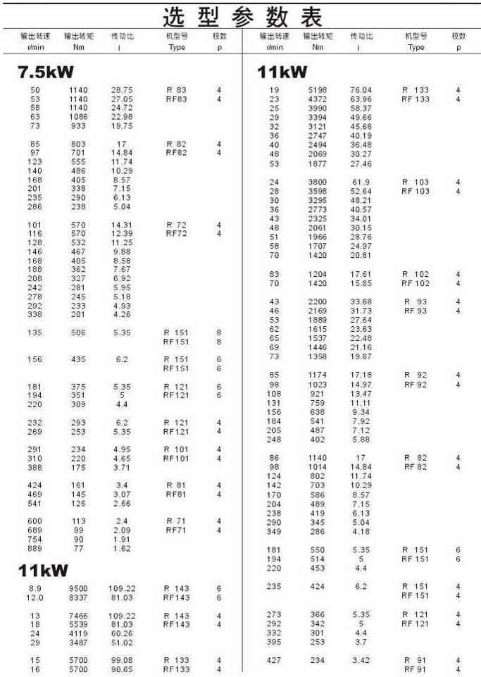 選型參數(shù)表7.5kW(續(xù)),11kW