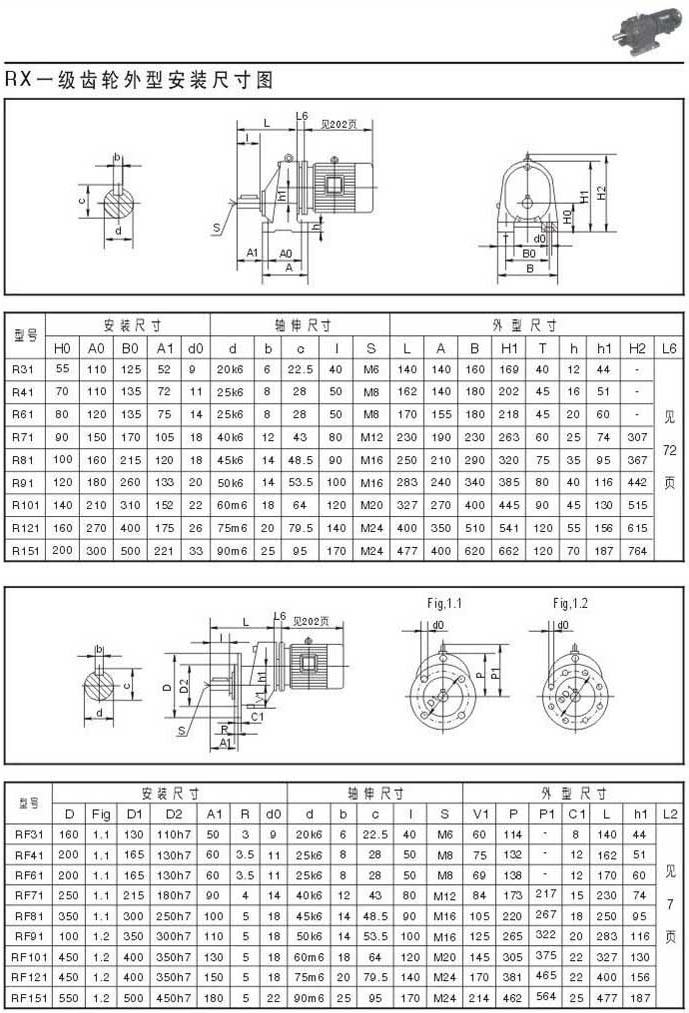 RX一級(jí)齒輪外型安裝尺寸圖表