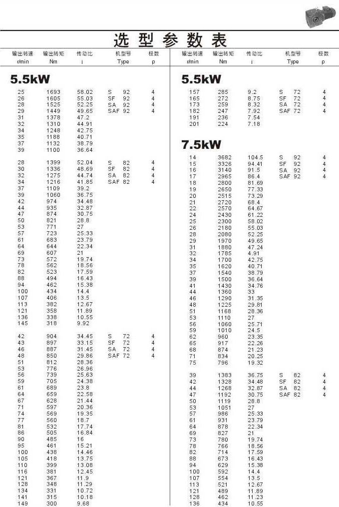 選型參數(shù)表5.5kW(續(xù))和7.5kW